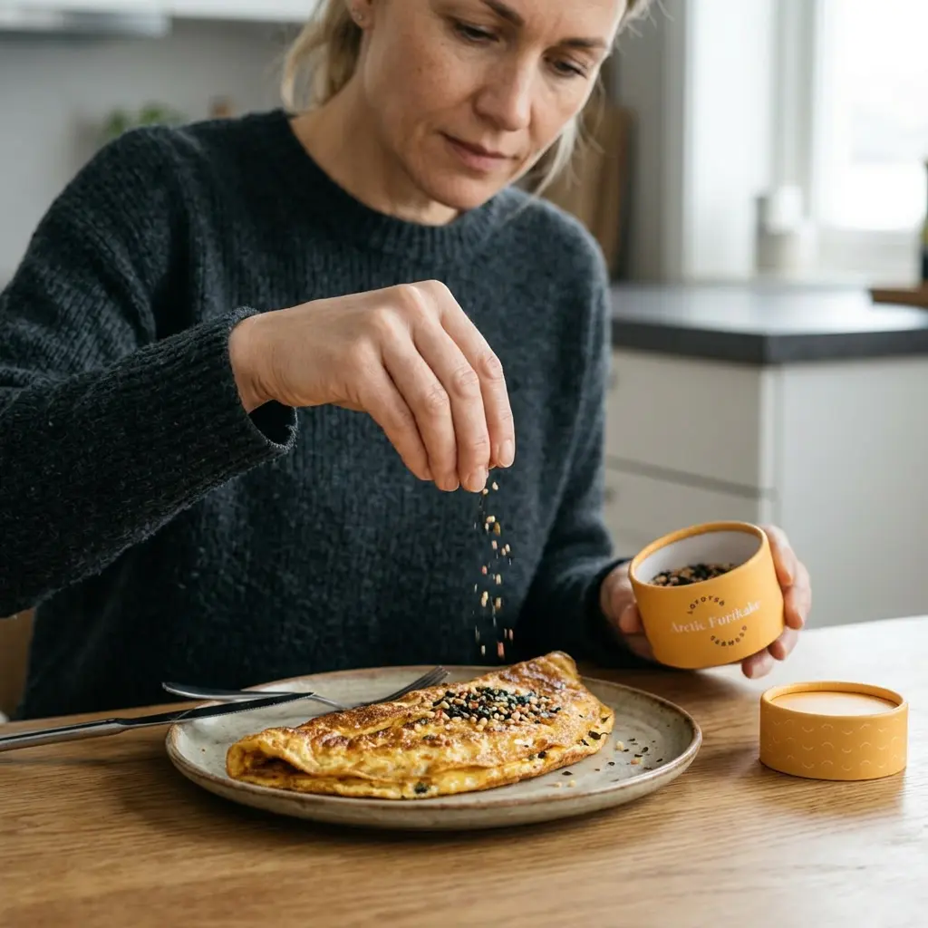 Kõige lihtsam viis furikakega sõbraks saada on alustada munadest. Munapuder ja omlett on paljude hommikusöökide põhitoit – paar näpuotsat Arctic Furikake’t muudab need kohe põnevamaks.