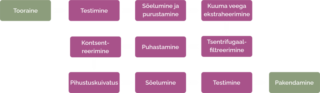 Ekstrakt kuivatatakse pihustus tsentrifuugi meetodil 180-200 kraadi juures.